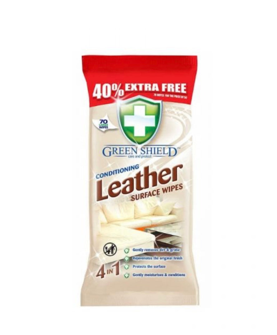 Green Shield ādas kopšanas salvetes ir speciāli izstrādātas, lai maigi notīrītu netīrumus un traipus, mitrinātu un kondicionētu ādu, kā arī atjaunotu sākotnējo izskatu un aizsargātu virsmu. Tās ir piemērotas dažādiem ādas izstrādājumiem – tostarp ādas mēbelēm, somām, apaviem, auto sēdekļiem un citām ādas virsmām.
