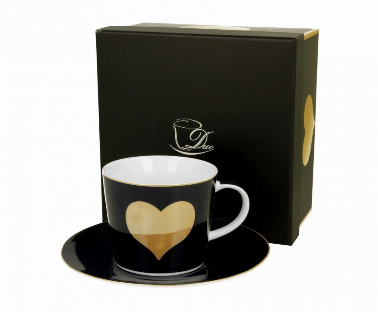 Krūze ar apakštasi Tumši zila ar zelta lielu sirdi- Valentīndienas dāvana 250ml
