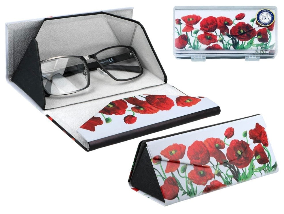 Stilīgs un praktisks saliekams briļļu futlāris no Carmani kolekcijas ar košu magoņu motīvu. Futrālis apvieno izsmalcinātu dizainu ar ērtu salokāmu konstrukciju, padarot to par lielisku aksesuāru ikdienas lietošanai.