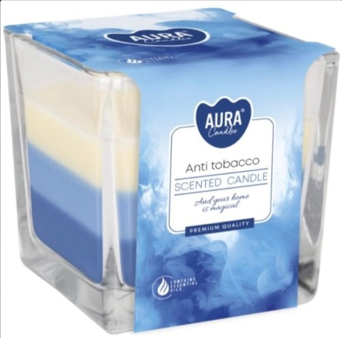 Svece stikla traukā “Anti tobacco” 8x8 cm, 32 h