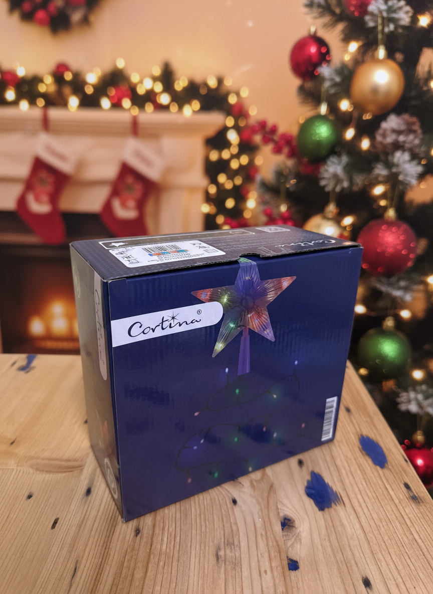 200 LED. 11.9 metri virtene, 3m vads, 0,29m zvaigzne. Krāsaina gaisma. Iekštelpu lietošanai. IP20. Maināmi gaismas režīmi.