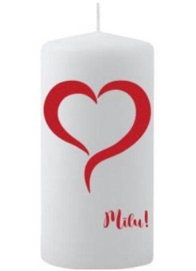 Cilindrsvece ar apdruku “Mīlu” un sirsniņu – 5.8 × 12 cm, 40h