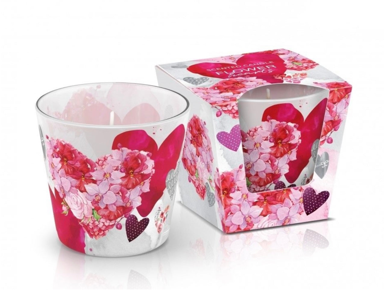 Svece stikla traukā ar aromātu “Flower Hearts” 115 g, 30 h
